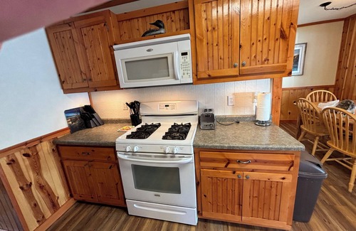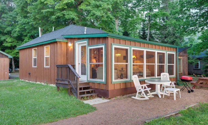 Enjoy a newly remodeled, 4-season cabin right on the Lake of the Falls shore! The living room’s wall of windows offers breathtaking views, giving you the feeling of casting your line from the couch. This charming cabin features 3 bedrooms, a full bath, and a cozy dining area. Outdoor activities abound: grilling, campfires, kayaking, canoeing, paddle boating, and fishing. Onsite amenities include a game room with ping pong, board games, and yard games, plus a big wooden swing. Fish cleaning facilities, complimentary 14' rowboats (with life jackets and anchors), motor rentals, 16' Bass Tracker boats, and relaxing pontoon rentals are available. Perfect for fishing or a lazy lake day!