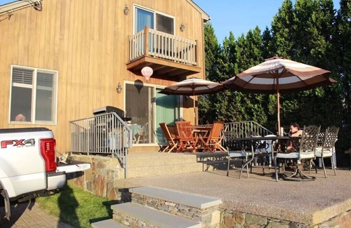This home features an open concept floor plan for the kitchen, dining area and living room. Living room includes a 65-inch Smart TV ; stainless appliances, granite counters; glass doors to patio. 1 large bedroom (queen) and full tub/shower bath on first floor. Upstairs has 3 large bedrooms (1 with 2 full size beds, 1 with a queen, 1 with full bed) full tub/shower bath, open balcony overlooking beamed ceiling living rooms. All bedrooms include large mounted flat screen TV's! New furnishings, immaculate, cable/internet, washer/dryer and two patio tables with an outdoor fire pit! All the amenities for a perfect vacation!