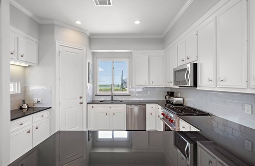 Inside, Sandcastle offers the perfect mix of comfort and privacy. The main level features two cozy bedrooms and a full bath, while the second floor boasts two spacious primary suites, each with its own bathroom and private balcony access. With 3.5 bathrooms, there's plenty of room for everyone to get ready and recharge. Just a short drive from Galveston’s top attractions—like Moody Gardens, Schlitterbahn Waterpark, and the charming Strand Historic District—Sandcastle combines the tranquility of beachfront living with easy access to island fun.