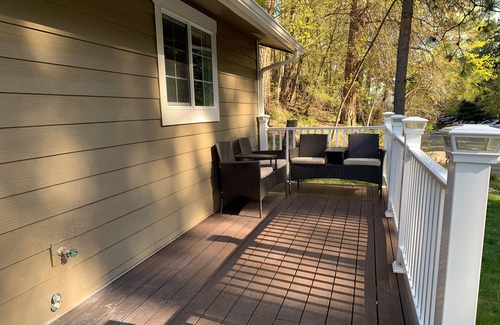 You may hear pleasant noises during your stay as it is adjacent to the entrance to hiking trails and near public beaches. The property is adjacent to our main house, so you may also hear us and our family in our yard.