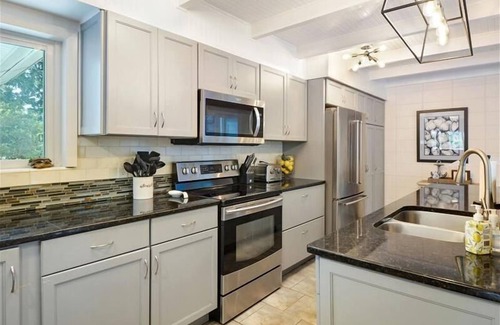 Beautifully decorated 4 bedrooms, 3 bathrooms. Renovated, open concept, great for entertaining. Large living/dining room, kitchen. Screened-in porch adjacent to private outdoor pool and hot tub. 5 flat screen TV all with access to premium Direct TV channels. W/D, MW, DW, WIFI, Blu-ray, gas grill. Beds: 1 King, 5 Twins, 1 bunk (twin over full), 2 twin memory foam roll-away beds, 1 high chair, and 1 crib.
