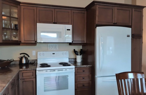 Open concept private cottage with cathedral ceilings and all the amenities of a complete kitchen including DISHWASHER, microwave, coffee maker & toaster. Amazing gas BBQ--with a view of the lake from the expansive deck while you cook! Everything you'll need for a relaxing fun- filled holiday. Canoe (incl adult life jackets) and floating raft available.
