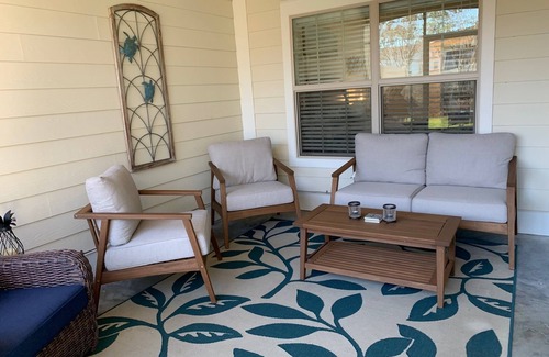 Easy on and off island and next to the beauty of Gascoigne park, Epworth, and adventure at St Simons Marina. Short bike ride on paths to beach or village or just explore the island. Sit around the fire pit in the evening with your favorite beverage. or relax on the screened in porch. 2 car garage and parking for 4 cars. 2 living areas, 4 bedrooms (one can be used as an office with murhpy bed/desk), 3.5 bathrooms. 2 separate living areas. 2 masters, each with private en suite bath (one on main). Community pool. Pets welcome. New listing/furnishings; community is 5 years old with beautiful pool and fishing pond.