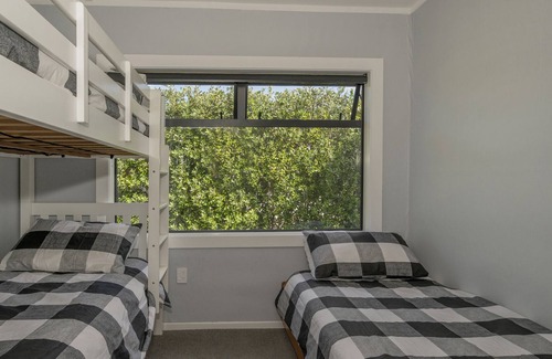 Three bedrooms and two bathrooms comfortably accommodate up to 8 guests (with a maximum of four adults - as the bunk beds are only suitable for children). The second living area accessed externally is a fantastically spacious rumpus room with a bathroom, ideal for teenagers or kids, with a double bunk bed, and single bunk bed and games galore...and a door to keep the noise at bay! The options for different bed configurations covers all the bases for your next family or friends group retreat.