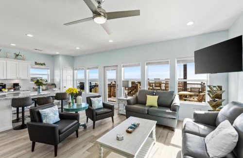 1.5 miles from Gilchrist Beach in Gilchrist, Sangria Sunset by BV! NEW Beachfront 5BR, Sleeps 18, Multiple Decks! provides accommodations with access to a spa center. This beachfront property offers access to a balcony. The spacious vacation home includes 5 bedrooms, a fully equipped kitchen with a dishwasher and an oven, as well as a kettle. A TV is provided. The property offers sea views. A water park and a children's playground are available for guests at the vacation home. Jack Brooks Regional Airport is 55 miles away.