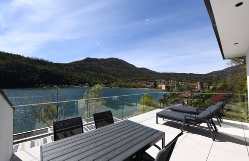 Fabulous lakeside villa newly built with large terrace and spectacular lake views! South facing sunny property, 25 m2 terrace , air-conditioning and private parking. Come and enjoy Sans Souci 2, situated just a few meters away from lake Lugano. You will be staying within 1.5 hours drive from Milan and within 1 hour from the heart of the Swiss Alps. At Sans Souci 2 you can truly take in the view, relax and experience Switzerland in all its beauty!