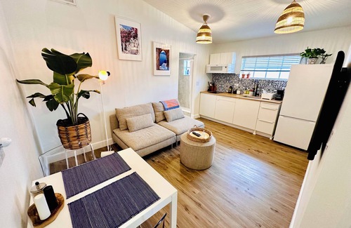 Step into the allure of a coastal Greek oasis in our urban chic apartment. Immerse yourself in the stylish ambiance of sunlit white interiors, reminiscent of a luxurious island cabana. Modern amenities, including a sleek bathroom, offer comfort and sophistication. Discover a trendy retreat that combines cosmopolitan living with Mediterranean flair.