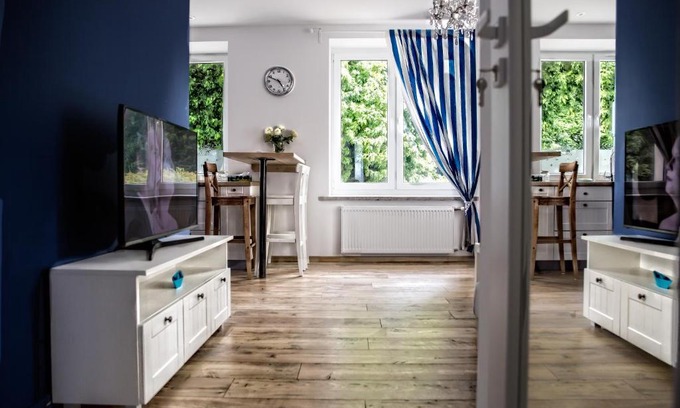 Santorini in Kołobrzeg features accommodations with free Wifi, a 4-minute walk from Kołobrzeg Railway Station, 0.4 miles from Town Hall, and a 14-minute walk from Kolberg Pier. The property is around a 13-minute walk from Stadium Kolobrzeg, 1.4 miles from Kolberg Fortress, and 27 miles from Mielno Koszalińskie Train Station. The property is a 15-minute walk from Kolobrzeg Central Beach and within 300 yards of the city center. This apartment includes 2 bedrooms, a living room and a flat-screen TV, an equipped kitchen with a dining area, and 1 bathroom with a walk-in shower and a washing machine. Towels and bed linen are available in the apartment. The accommodation is non-smoking. Popular points of interest near the apartment include Kołobrzeg Lighthouse, Polish Arms Museum, and St. Mary's Basilica. Solidarity Szczecin-Goleniów Airport is 65 miles from the property.