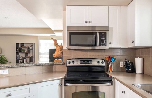 This kitchen is fully stocked with essentials to complete the home-away-from-home experience.
