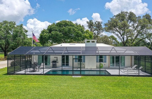 A private Sarasota, Florida 8+ acre ranch with a short travel time to Siesta Key Beach and / or Downtown Sarasota, of course all the associated area amenities, a great and rare Florida stay experience / combination beach & rural. Property photos speak volumes, yes the pool is heated and salt water :) Plenty of parking for RV's / Trailers / ATV's / Other.