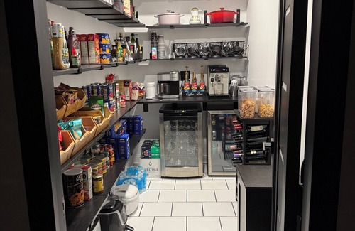 Pantry - Walk-in includes a wine refrigerator, wine rack and a beverage refrigerator plus a bunch of small kitchen appliances.
