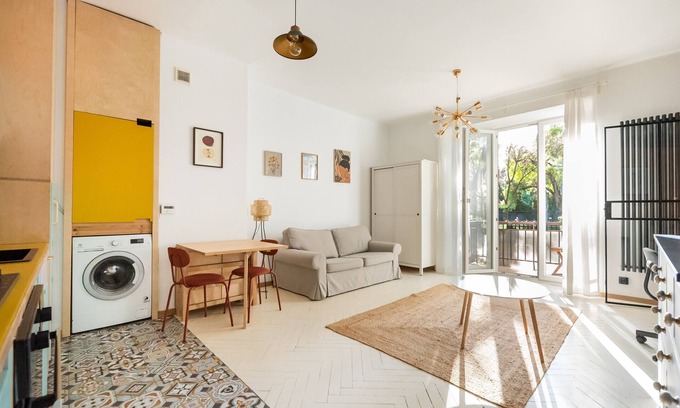 Saska Kępa Loft Style Apartment is located in one of the most beautiful districts of Warsaw - Saska Kępa. Saska Kępa stands out with its exceptional architecture, reminiscent of resort towns in the south of France. Low-rise buildings, numerous gardens, a large number of green areas, as well as trendy restaurants and bars are the hallmark of the Praga district. Its most popular part is Francuska Street, where you can find modernist villas, the best Warsaw restaurants, and a charming promenade. Saska Kępa provides its residents with exceptional living conditions - close to the center of Warsaw, surrounded by greenery, with excellent road infrastructure and a well-developed network of public transport connections. Furthermore, the apartment's location is near the picturesque Vistula River, in close proximity to the National Stadium, Skaryszewski Park, and Kamionkowskie Błonia Elekcyjne. To the east, the estate borders Lake Gocławskie and Balaton Park. The western part of Saska Kępa is an extensive stretch of the Vistula River with wild beaches, swimming pools, and other recreational facilities. The area is full of shops (Biedronka, Auchan, Żabka, Carrefour Express), cafes (Vintage Kolektyw, Green Caffe Nero), restaurants (Mięsny, Pikanteria, OSP Saska Kępa, Efes Kebab, Bułkę przez Bibułkę, Bałkańska Dusza), and service points. The location facilitates easy mobility due to numerous bus and tram stops (Walecznych, Stacja Krwiodawstwa, Zwycięzców, Berezyńska, Rondo Waszyngtona), as well as a metro station (National Stadium) and a railway station (Warszawa Stadion).