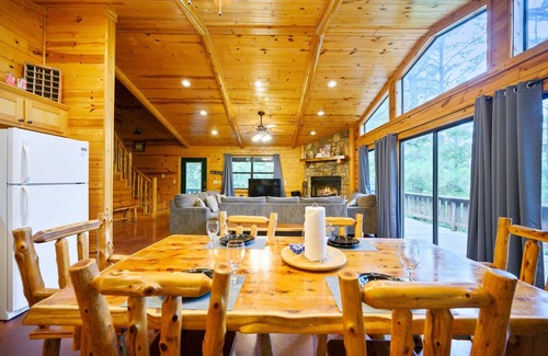 Sasquatch Hills integrates an authentic "log cabin in the woods" experience with contemporary conveniences. Stay connected with high-speed internet and enjoy entertainment on smart TVs located in the living room and all bedrooms. The fully equipped kitchen will support all your on-property cooking plans, while the outdoor propane grill on the deck (propane provided) is perfect for outdoor cooking. Gather around the dining table for shared meals and moments you'll never forget.