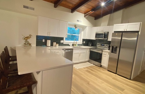 Two newly remodeled bathrooms - one with a tub for easy kids’ baths! A third shower outdoors and a rinse-off station for beach days. You and your guests will truly love how simple it is to visit the beach! Start your morning searching for seashells and end your day walking the coast to see our unique, satsuma-orange colored sunsets.