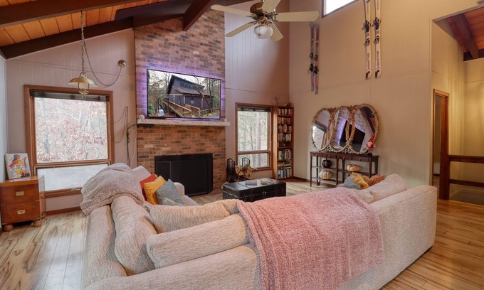 Enjoy the hundreds of trees in the yard or in the screened in porch during rainy days and make s'mores. Equipped with a smore machine for the little ones. Both levels have real fireplaces as well. The electricity goes out a ton in the area, but you should be covered with our generator to keep you going.