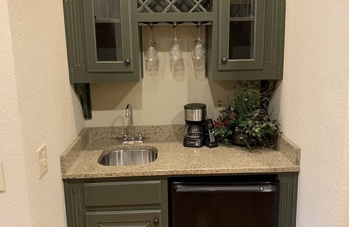 This is a spacious non-smoking 3 bedroom, 4 bath home. Upstairs is a large main bedroom with a king-size bed creating an idyllic atmosphere including shower and separate spa soaking tub. Also, upstairs is a separate dining area and kitchen with plenty of space for up to 8 with a breakfast bar. The kitchen is fully equipped with every appliance you could need to prepare and serve meals including a new crockpot, coffee pots, ice cream maker, which my kids love, and a K-cup machine plus refrigerators on both levels for your convenience.