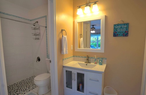 The house is located just 90 feet from the ocean with 85' of shoreline. The beach is rocky, so water shoes are a must! There are several good snorkeling areas just off the shoreline boasting an abundance of vegetation, reefs and marine life.