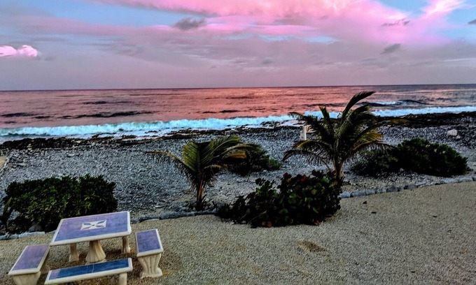 Hear and see the ocean in this beautiful, remodeled 670 Sq. Ft, one bedroom ocean view cottage features an open floor plan enabling you to interact with others easily. the Cottage is sharing the property with another 2 bedroom Main house "Escape from Reality". It has central air, living room areas, all new kitchen with gorgeous vanilla cabinetry and quartz countertop, new appliances, bottled water quality water through an iSpring 5 Stage water purifier, new furniture, new premium pillow top mattress and updated bathroom. The living room has a 42" flat screen "smart" HDTV. WiFi, Roku, Netflix and IHeart Radio access included. The house sleeps up to 4 when using the queen size hide-a-bed located in the living room. Included in each house are free WiFi, Netflix, several games, paperbacks, stateside phone for free calls, and a local cell phone. The house is not suitable for small children due to the decorative items. You can also experience a local game using the local soldier crabs or "hermit crabs" in a circle and seeing whose wins the race to the food in the center. Whenever we are there my daughter takes a little leftover food out each evening and they have come to expect it and show up for "dinner". They range in size from baseball size hermits to tip of your pinky sized ones.