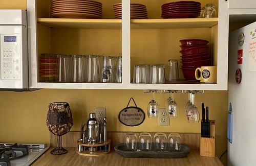 Three of the upstairs bedrooms have window air conditioning units and a large one for the downstairs. Stays plenty cool. Also ceiling fans in all upstairs bedrooms. We are well stocked with items to make your packing easier and lighter.