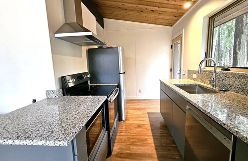 This Cute comfortable 2 bedroom, 2 bath cottage is within walking distance to a wonderful township park on East Grand Traverse Bay with a nice beach for swimming, boat launch, playground, grills, picnic tables and more. Set on a quiet private wooded dead end street. The cottage offers an open floor plan with vaulted ceilings, fireplace, central air, wifi. The kitchen is being completely remodeled as we speak. New cabinets, stone counter tops and all NEW appliances.. Sit on the large deck and enjoy the peace and quiet of Northern Michigan. This cottage is just a 10-15 minute drive to the Traverse City Horse Shows, and not far from Traverse City or the quaint harbor town of Elk Rapids.