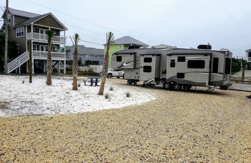 All RV campers have beach access via Catamaran Drive (lot owners have deeded beach access). No tent rentals allowed and not more than one RV. Easy entry and exit (loop driveway design for convenience in mind) featuring double-wide driveway and additional parking in rear. Rental includes electricity (bring amp converter), picnic table, water, outside shower, sewer (leave automatic sewer switch on), and garbage pickup. Deeded beach access 3 minute walk from property, with spectacular bay front views from the front. Local to-do's include: fishing, horseback riding on the beach, scalloping, swimming, snorkeling, and paddle boarding. You'll also find located along the Cape seven miles of paved bayside bike/walking paths. Boats are welcome- there is great fishing nearby with a deep water boat launch located at the state park. There is nearby shopping and dining located in charming Apalachicola, FL (check out the Tin Shed for a true experience). Enjoy waterfront dining at Caroline's or grab a beer at Oyster City, one of North Florida's finest breweries. Back on the Cape itself you will find a convenience store three streets away, gas station, ice cream shop, and a Low-Country Boil restaurant (all close but not too close). First responders station also located on the Cape with a hospital located seven miles away. Lot equipped with utilities (equipped for both 30 amp and 50 amp hookups, but please bring your own adapter converter!), a picnic table and an outdoor shower area. When you leave pull garbage to side road (pickup on Mondays). Offered by 2020 Waterview RV Lots of Florida, LLC. See Saylor's Sunset sign on property site. Outdoor video surveillance may be activated by owner for security purposes. Kids and pets are always welcome. Please pickup after your pets. Garbage pickup is on Monday. Pull can to road as you leave. Bring your 30/50 amp converter. The automatic sewer switch should be on when you arrive AND leave.