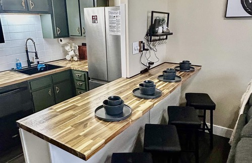 Beautiful butcher block in the kitchen and dining areas