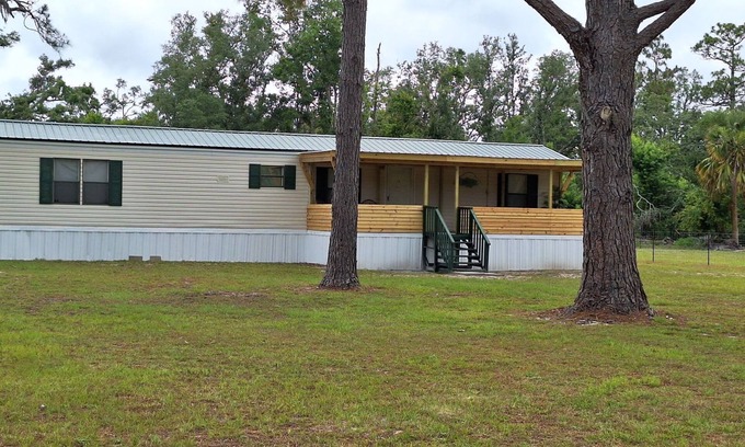 Your Hunting and fishing adventure begins at this charming 2-bedroom mobile home. With 2 queen beds, AC, WiFi, and a washing machine, guests can relax and unwind in this lovely space. Enjoy the convenience of 2 bathrooms with showers and hair dryers. Fire pit, grilling area and a large front porch make this an enjoyable property. We have plenty of room for boat parking and even long-term storage if interested under our shelters. Experience what Spring Warrior has to offer with a stay at our mobile home. Things to do include fishing the gulf, scalloping, hunting or just riding around seeing nature in the local management area. Only 3 miles from Spring Warrior Fish Camp and 15 miles from Keaton Beach. The area is great to relax.