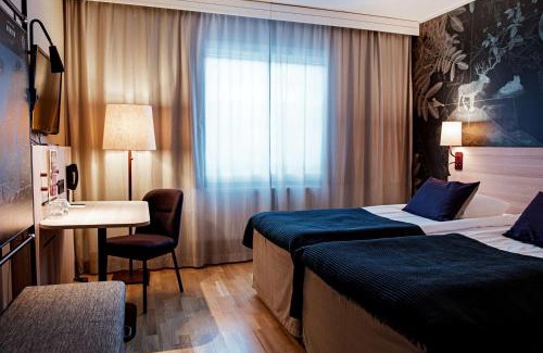Just 0.6 mi from Coop Arena and 10 minutes’ drive from Luleå Airport, this eco-friendly hotel offers free sauna, pool and gym access. Luleå Central Station and the city center are 1.9 mi away where you easy can access the Ice track during winter time The airport bus are stopping just outside the hotel. During summer time you can borrow bicycle from the hotel. All rooms at Scandic Luleå have a TV, desk and private bathroom with shower. Some rooms include tea/coffee facilities. The restaurant serves a daily breakfast buffet and dinner from Monday to Saturday.