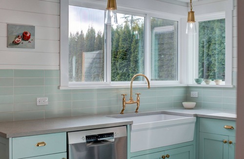 In 2021, most of the home was rebuilt from the studs out. Old flooring, wall paneling, a false ceiling, appliances, cabinets, and much more was carefully removed, reclaimed, and reused by others within the area. Norwegian White Oak Hardwood Floors were installed, along with a vintage barnwood beam. Custom Finnish fabric shades & drapes adorn the new window and a skylight brightens up the second bedroom. The home's new walls are a combination of shiplap, brick, Farrow & Ball paint, glazed tile from Sausalito, and a touch of Martinique wallpaper in the bathroom. Brass knobs, pulls, and pendant lighting in the kitchen complement the English deVol faucet. These are just a few examples of the many features you'll enjoy when you stay at this home.