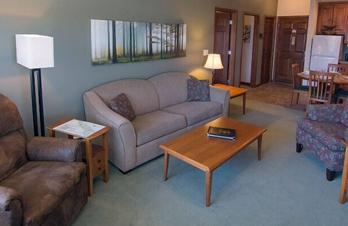 Each apartment boasts a fireplace and a jetted tub, while offering a washer/dryer and a dining area. For a bit of entertainment, a flat-screen TV comes with cable channels, and guests can also appreciate conveniences like a sitting area and a refrigerator.
