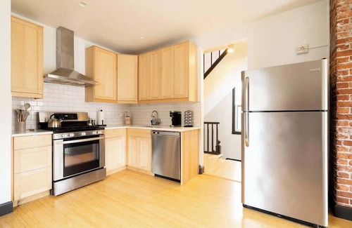 This beautifully remodeled 3-bedroom, 1-bathroom apartment blends early 1900s charm with modern conveniences. The renovation preserved original character with restored doors, trim, and hardware. Despite its historic touches, the apartment is modernized with new appliances, updated windows, high-speed internet, YouTube TV, and Netflix, ensuring a comfortable stay. Enjoy the perfect balance of classic charm and modern luxury in this unique Portland retreat.