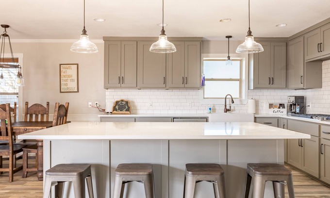 Enjoy a stay at our recently renovated farmhouse with an expansive patio, swimming pool, fire pit, and a BBQ space. Experience the beauty of the country just minutes from town. This beautiful house is perfect for a relaxing getaway or even a grounding, long-term stay. The best part about it? You feel disconnected from the commotion of the city but just minutes away from major shopping centers, water parks, resorts, and nightlife.