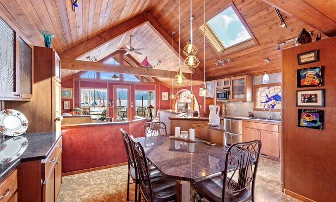 Escape to our serene floating Home nestled on the tranquil waters of Lake Pend Oreille. Our two-story float home offers the perfect retreat for up to 4 guests, boasting breathtaking, unobstructed views of the glistening lake and the bustling Bitter End Marina.