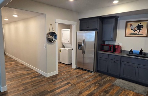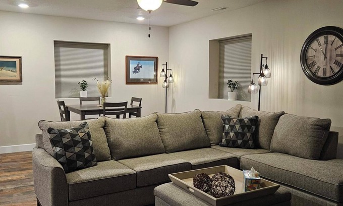 Welcome to your chic retreat in the Wasatch Mountains! A spacious, sunlit basement apartment with a fully equipped kitchen and plush king-sized bed. Private entrance. Quiet neighborhood. Explore outdoor adventures at Salem Pond, Grotto Falls Trail, Maple Mountain, Fifth Water Hot Springs, Squaw Peak Trail, Strawberry Reservoir, and Antelope Island State Park. Hiking, kayaking, golfing, climbing, biking, pickleball. Quick access to I15. 20m from Provo Airport.