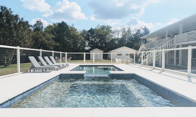 Escape to this stunning 6BR, 5BA estate on 10 private acres, just minutes from downtown Chattanooga. Perfect for families or groups, this home features three ensuite bedrooms, two kitchens, and expansive living areas with vaulted ceilings. Relax by the in-ground pool and spa, dine on the spacious patios, watch a movie projected on a 100in screen, or gather around the cozy built-in firepit. Enjoy modern amenities, scenic views, & easy city access. Ideal for those seeking a peaceful retreat with space to unwind and connect. Book your unforgettable getaway today!