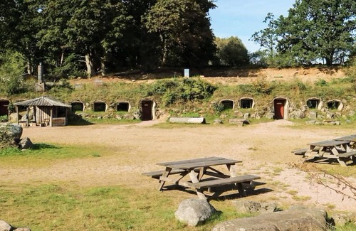 Accommodation for larger families or groups in the Cave Village! Our rooms, which accommodate the largest number of guests in the village, feature four bunk beds, making them perfect for big families or groups. The rooms are also equipped with a private shower and toilet. Additionally, each room has a TV with built-in Chromecast and free Wi-Fi. Bed linens and towels are not included, and guests are responsible for cleaning the room before departure. Located about 2 km north of Höör, the property is nestled in a beautiful deciduous forest with beech, oak, and birch trees. Part of the area is a nature reserve, providing a peaceful environment. Our closest neighbor is Skåne's Zoo, and nearby attractions include Bosjökloster, Björkviksbadet (Höör's own adventure pool), and Fulltofta Nature Center. For a relaxing day, Vaxsjön, with its lovely swimming area, is just a 30-minute walk through a charming forest trail. The area also offers football fields, BBQ spots, and fishing opportunities. Additional tips are available on Höör's tourist association website. From this central location, you can easily reach all of Skåne’s attractions, as well as nearby Denmark and Copenhagen. The surrounding area also offers hiking trails, beautiful swimming spots, and fishing lakes. Just a 5-minute walk from Skåne's Zoo, it’s an ideal spot for family-friendly outings. With its proximity to Höör and Malmö, guests can enjoy both natural beauty and cultural experiences, ensuring a fulfilling and diverse stay.