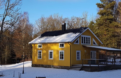 The house has large wooden alcove with outdoor furniture and barbecue in a beautiful forest environment. Smokeless indoors. The forest around the farm has good mushrooms and a nature reserve is found in our forest one kilometer north of the farm.
