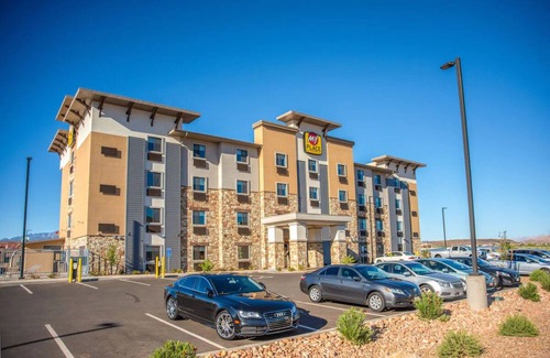 Welcome to our cozy retreat in the heart of St. George, your perfect home away from home! Unwind in our spacious, pet-friendly suite featuring a full kitchen ideal for extended stays. Enjoy our plush, comfortable bedding that ensures restful nights. Our convenient location means easy access to local attractions like Red Hills Desert Garden and Pioneer Park. Plus, enjoy modern comforts with free high-speed Wi-Fi, an EV charging station, and 24-hour laundry facilities. Your perfect getaway awaits!
