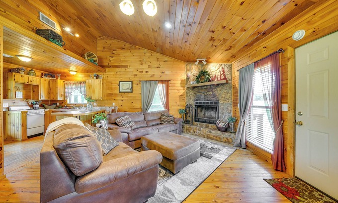 Experience the serenity of nature when you book 'The Wolf Cabin,' a secluded vacation rental on a stunning stretch of Smithville countryside. Ideal for a romantic couple's retreat or a family getaway, this 1-bath studio cabin is perfect for rural relaxation. Lounge on the covered porch, fire up the charcoal grill for a BBQ, or stargaze around the fire pit! When you're ready to explore, you can wander along the on-site walking trails or plan a day trip to Broken Bow Lake.