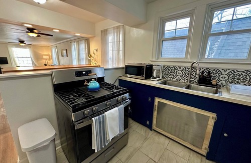 This serene rental offers two spacious bedrooms, creating a tranquil atmosphere for up to four guests. With abundant natural light, minimalist decor, a range oven, and a full fridge in the kitchen, this unit provides a peaceful retreat. Enjoy stunning river views.
