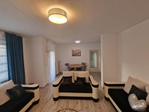 Featuring a garden, Schatzberg features accommodations in Überlingen. This apartment provides free private parking, an elevator, and free Wifi. Outdoor seating is also available at the apartment. Providing a balcony and garden views, the spacious apartment includes 2 bedrooms, a living room, flat-screen TV, an equipped kitchen, and 2 bathrooms with a bath. Towels and bed linen are provided in the apartment. This apartment is allergy-free and non-smoking. A mini-market is available at the apartment. You can play table tennis at Schatzberg, and car rental is available. If you like to discover the area, snorkeling, cycling and fishing are possible in the surroundings and the accommodation can arrange a bicycle rental service. Messe Friedrichshafen is 21 miles from Schatzberg, while MAC - Museum Art & Cars is 23 miles away. Friedrichshafen Airport is 20 miles from the property.