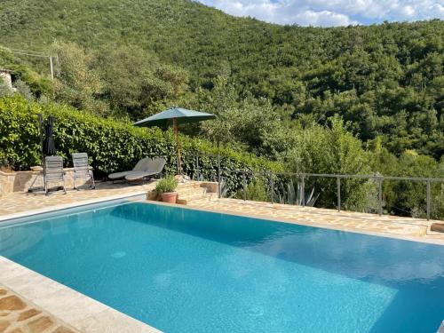 Offering a garden, Scheggino - Casale con piscina e splendida vista offers accommodations in Scheggino. This property offers a private pool, free Wifi, and free private parking. The air-conditioned villa consists of 2 bedrooms, a living room, a fully equipped kitchen with a dishwasher and a kettle, and 1 bathroom with a shower and a hair dryer. Guests can take in the views of the mountain from the patio, which also has outdoor furniture. For added privacy, the accommodation features a private entrance. Guests can make the most of the warm weather with the property's barbecue facilities. Marmore Falls is 15 miles from the villa, while Piediluco Lake is 19 miles from the property. Perugia San Francesco d'Assisi Airport is 40 miles away.