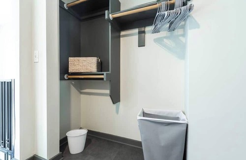 Discover the tranquility of our inviting bedroom, featuring a comfortable queen-sized bed with premium linens. Ample closet space is available to ensure you can unpack and settle in with ease. Soft lighting and thoughtful decor create a peaceful atmosphere for a restful night's sleep.