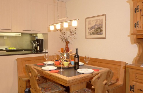 "Schoneggacher Apt. S", 3-room apartment 67 m2 on 1st floor, south facing position. Bright, modern and cosy furnishings: living/dining room 23 m2 with cable TV (flat screen), hi-fi system and DVD. Exit to the balcony. 1 double bedroom with 1 double bed (180 cm, length 200 cm). Exit to the balcony. 1 room with 2 beds (90 cm, length 210 cm), separate WC, shower/WC and double hand-basin. Open kitchen (oven, dishwasher, 4 ceramic glass hob hotplates, toaster, kettle, electric coffee machine, Capsules for coffee machine (Nespresso) extra, raclette grill, fondue Set (chinoise, cheese)). Heating. Natural stone floors. Balcony 7 m2, balcony 3 m2, south facing position. Marvellous panoramic view of the mountains and the ski run. Facilities: Internet (WiFi, free). Please note: suitable for families. Non-smokers only.
