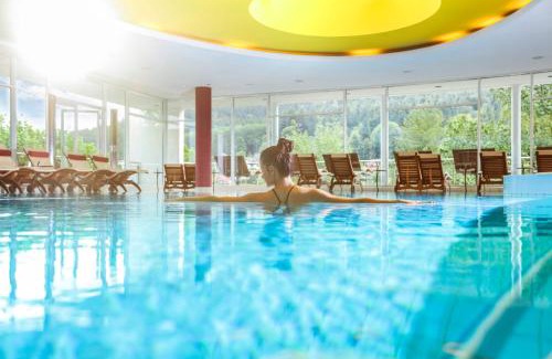 This 4-star-superior hotel is located in the spa town of Bad Herrenalb, with beautiful views of the Black Forest. The panoramic spa includes an indoor swimming pool, various saunas and a spa tub. The Schwarzwald Panorama in Bad Herrenalb offers large rooms featuring a balcony or a patio, free WiFi and a flat-screen TV with a selection of Sky satellite channels. Bathrobes, toiletries and a hairdryer are provided in the private bathroom. The Schwarzwald Panorama is a 5-minute walk from the spa promenade along the River Alb. It is ideal for hiking or cycling here in the Alb Valley. Massages and beauty treatments are also available. La Vie restaurant has a panoramic terrace and offers a selection of regional Black Forest specialties and seasonal dishes. Food at the hotel is at least 90% organic. The hotel also has over 20 years' experience in offering fasting courses. The Schwarzwald Bar lounge serves wines, beers and snacks. The hotel offers private parking on site depending on availability. It is a 30-minute drive from Baden Baden or Karlsruhe.