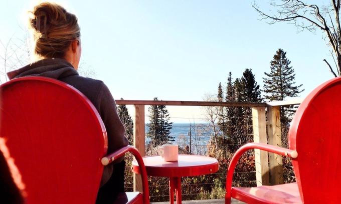 Adorably cozy cabin perched on ridge over-looking Lake Superior. Located only a couple miles from Grand Marais, "Scotch Pine" offers peaceful lake views and breezes in a private setting while remaining within easy reach of town. This newly remodeled (fall 2023) cabin is fresh and pristinely clean while maintaining the cozy charm of an original North Shore Cabin. With a queen bed in the bedroom and a second queen murphy bed stowed away nicely in the living room, the cabin is ideal for 1-4 guests. Families and friends alike will enjoy the large yard and campfire area. Prepare your meals in the well-stocked kitchen and enjoy dinner or a drink on the adjoining deck with a Big-Lake backdrop!