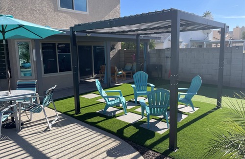 This already 5 star listing completed a 50K full pool & backyard remodel in the last year. The sparkling Belize blue pool has a new giant Baja/Tanning ledge, this is great for small kids or a place to lay in shallow water. A new putting green, upgraded arcade room and cinema loft. Professional photos of the remodel are coming soon to replace my I-Phone pictures.