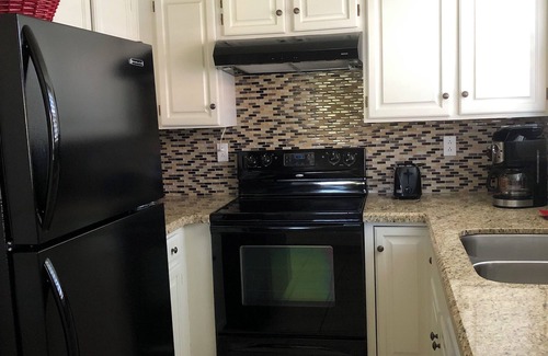 The roomy kitchen has lots of beautiful granite counter space, and a bar sink in addition to the double kitchen sink. There is a reverse-osmosis (RO) purified water system that supplies the ice maker and a separate faucet for drinking water. The kitchen is well supplied with dishes, glassware, wine glasses, tableware, & cookware to meet your needs, and plenty of cupboard space. A starter supply of paper products & a few spices are provided. All appliances, coffee maker, hot water kettle, blender, mixer, toaster, cookie sheets, plastic ware for the pool, salad & mixing bowls of various sizes, & serving dishes are all waiting for your use.