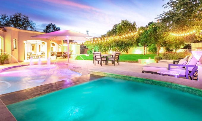 Best-rates for the Central Scottsdale house starts from $2,533 per night with includes TV, Balcony/Terrace, Security/Safety, Parking, View, Ocean View, Sports/Activities, Bedding/Linens, Wellness Facilities, Guest Services, Kitchen, Air Conditioner, Pool, Fireplace/Heating, Entertainment, Barbecue/Outdoor Cooking, Child Friendly, Hot Tub, Laundry, Pet Friendly, Private Pool, Internet StayAndPlay offers fully equipped golf villas, golf hotels, golf resorts, luxury golf cabins, and exclusive golf retreats, making it easier than ever to find your perfect golf escape — ideal for families, peaceful getaways, or pet-friendly retreats with the whole crew.