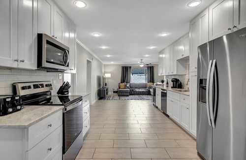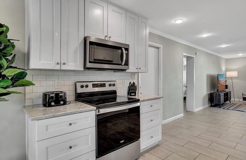 All the furniture is brand-new and modern. The living room has a Netflix Equipped Smart TV and a huge sectional. The kitchen and dining area is set up with everything that you'll need for cooking. There is lightening fast Wi-Fi, complimentary coffee, and all the essentials that you'll need for a great stay.